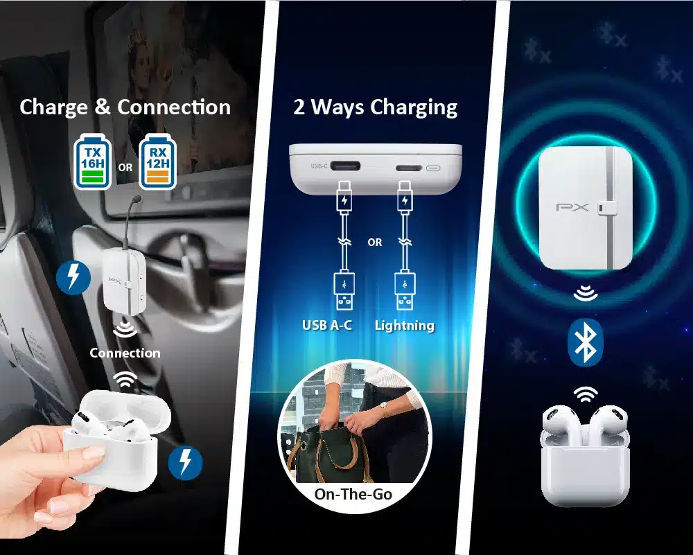 There is a simple way to make things easy. With a Bluetooth adapter for AirPods, travelers can enjoy the unmatched mobility, sound quality, and noise cancellation feature of their Own AirPods while watching movies or listening to music in the air.